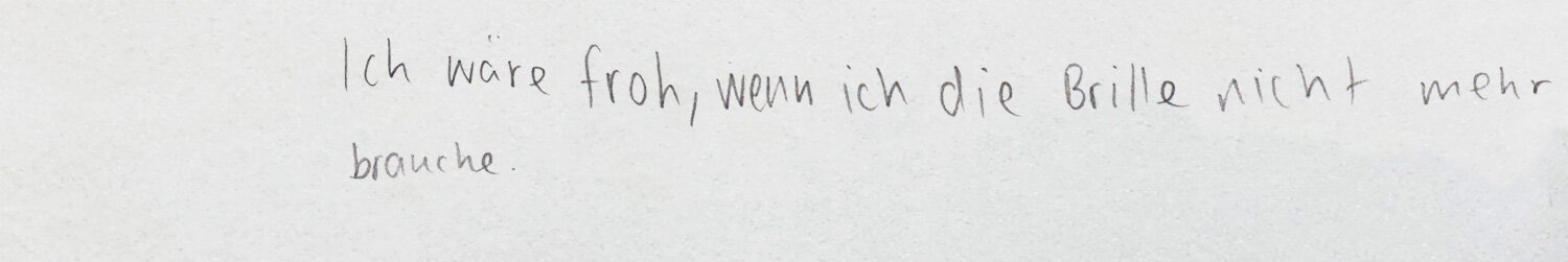Unser Sohn drückte durch vier Blätter hindurch und es wurde darüber gesprochen, mit der Einschulung deswegen ein Jahr zuzuwarten. Wir suchten nach dem richtigen Ort und wussten nicht, wo wir ansetzen sollten. Nach der dritten Therapie hat sich der Schreibdruck reguliert. Die Schrift drückt nicht mehr durchs Papier. Wir sind froh, dass er nun die Voraussetzungen für die Schule hat. B. aus dem Thurgau
